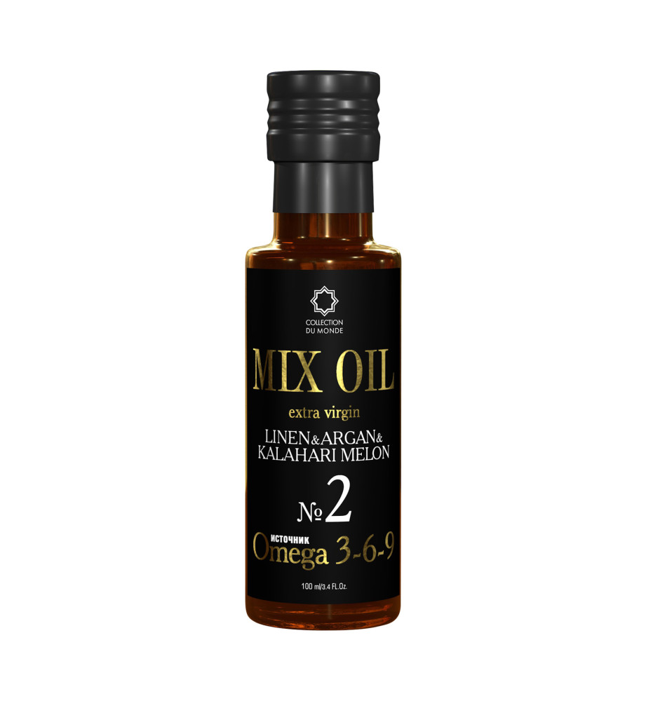 Масло растительное – смесь марки "Collection Du Monde": Микс растительных масел нерафинированных №2: масло льняное, масло арганы и масло калахарской дыни