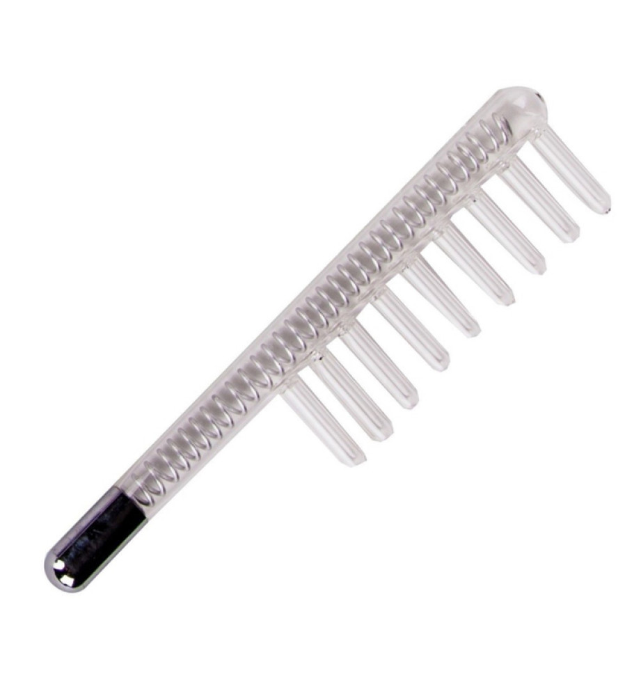 Электрод применяется для воздействия на волосистую часть головы для укрепления волос, стимулирования их роста и улучшения состояния кожи головы. Процедуры с помощью этой насадки помогают решить проблемы перхоти, облысения, себореи, а также избавиться от головных болей и улучшить общее самочувствие. Материал: стекло.