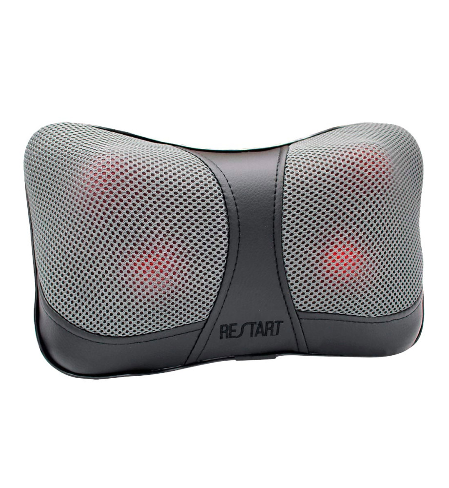 Компактный универсальный массажер для тела. Отлично выполняет массаж shiatsu c помощью 4 массажных роликов. С этой подушкой вы сможете размять шейно-плечевую зону, спину, поясницу, бедра ноги. У подушки вращение роликов меняется; инфракрасный прогрев (эту функцию при желании можно отключить); простое управление; съёмный чехол (можно снимать и чистить); есть ремень крепления; система отключения при перегреве. В комплекте сетевой кабель, адаптер для прикуривателя (подушку можно использовать как дома, так и в машине).